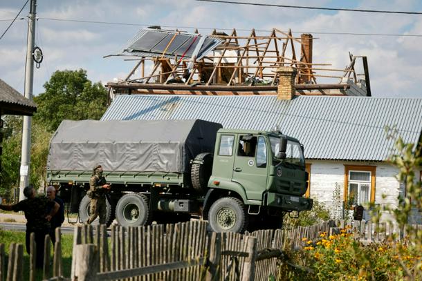 Footage posted by local media showed the army in Wyryki-Wola, a village in eastern Poland, inspecting a house with its roof ripped open and debris littered nearby.
